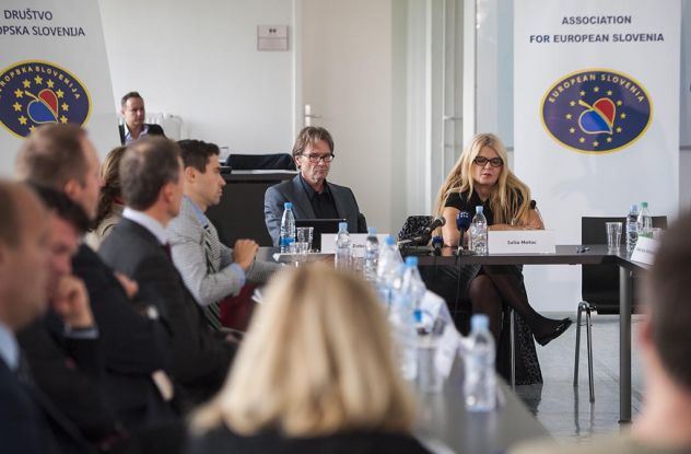 Judge Iulia Motoc of the European Court of Human Rights and Jan Zobec of the Constitutional Court of the Republic of Slovenia discussing systemic problems of judiciary from a judge’s perspective at the Conference on Crisis of Rule of Law and Democracy in Europe. Photo courtesy of demokracija.si.