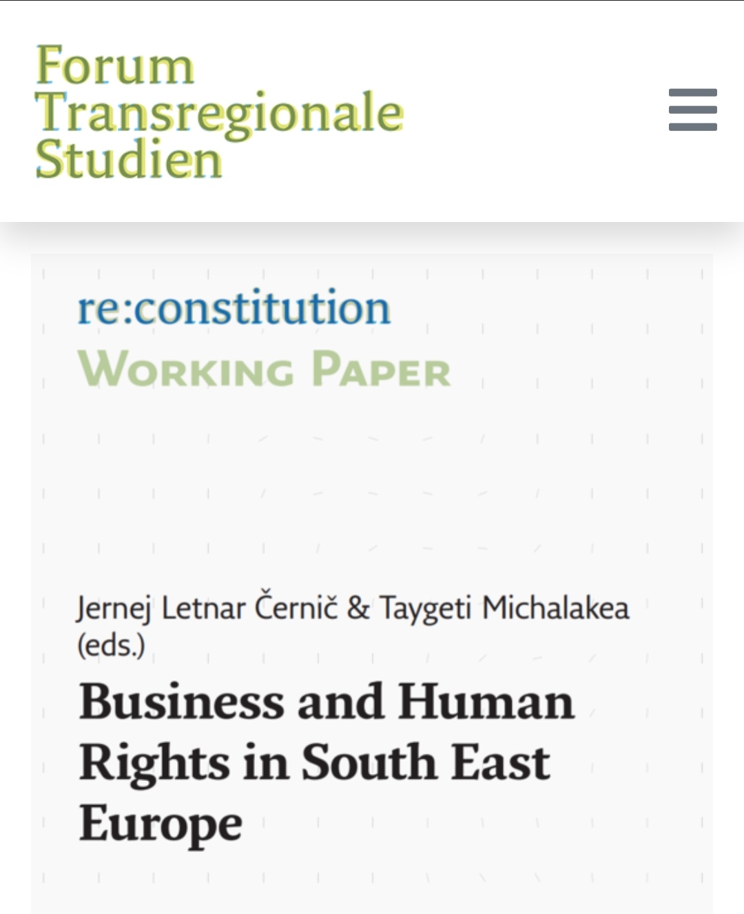 Happy to share our re:constitution Working Paper on Business and Human Rights in South East Europe, coedited by Taygeti Michalakea and myself. The Working paper is one of the first-ever publications on business and human rights in South East Europe. It includes contributions by eleven excellent authors. It aims to provide the first overview of developments and challenges related to business and human rights in Albania, Bosnia Herzegovina, Croatia, Greece, Montenegro, North Macedonia, Serbia, Slovenia, and Turkey. Here is the abstract: