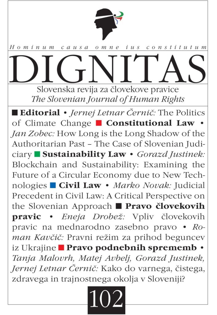 We are pleased to announce the publication of the latest issue of Dignitas – Slovenian Journal of Human Rights (no. 102). This issue features articles on various dimensions of human rights, constitutional, civil, sustainability, and climate change law. At Dignitas, we are committed to strengthening human rights capacity and knowledge in Slovenia, Central and Eastern Europe, and beyond. Many thanks to editors, reviewers and authors.