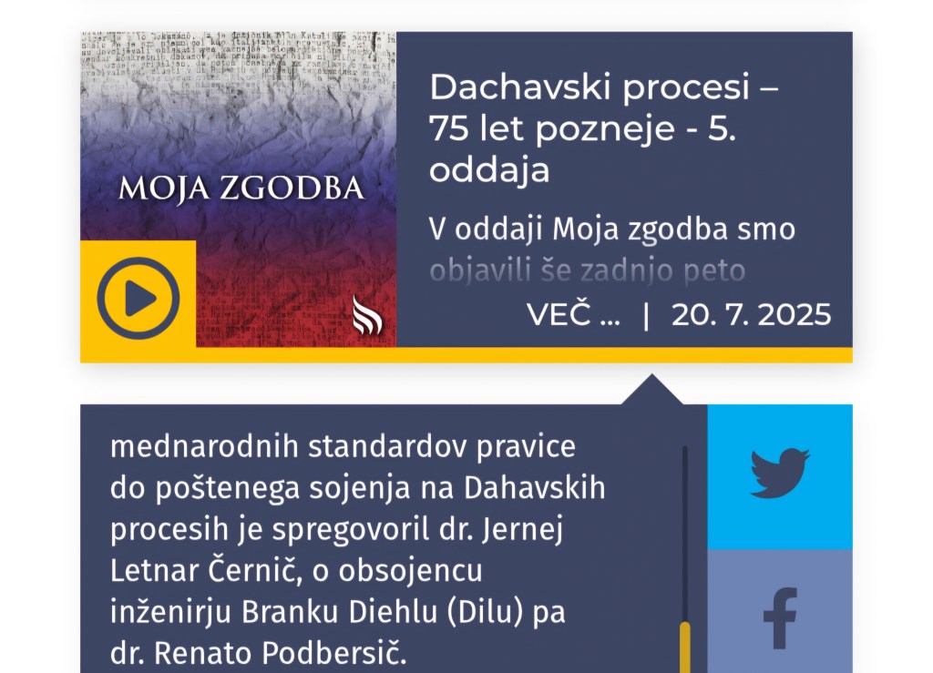Na Radiu Ognjišče so v oddaji Moje zgodbe objavili tudi prispevke s strokovnega posveta »Dachavski procesi – 75 let pozneje«, ki je potekal v novembru 2024. Med objavljenimi prispevki lahko poslušate tudi mojega, v katerem obravnavam vprašanje, ali so Dachavski procesi izpolnjevali mednarodne standarde poštenega sojenja.